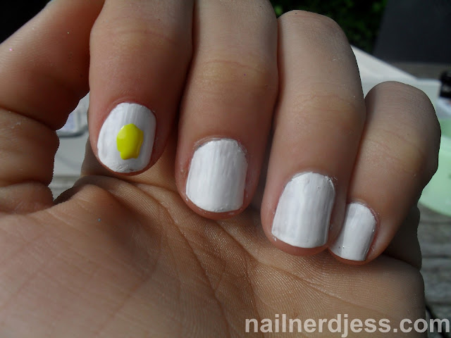 Je begint met alle nagels een witte basis kleur te maken. Dat is het makkelijkst met de nail-arts.