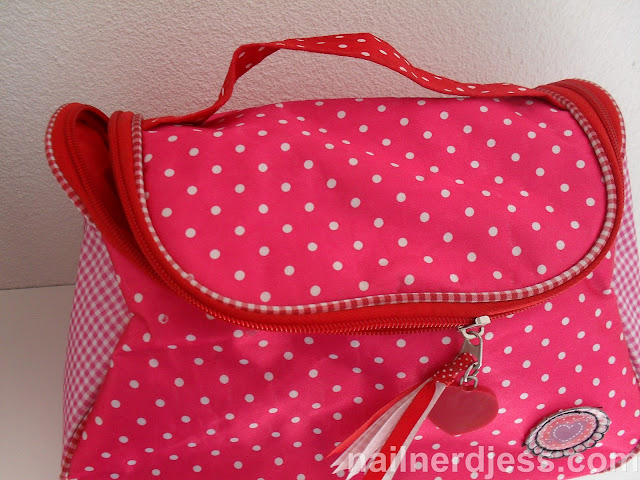 Dit is mijn beauty bag die ik altijd mee op vakantie neem. Ik heb hem ooit gekregen, dus ik weet niet waar hij in de winkel lag. In deze tas zat eerst mijn nagellak, maar inmiddels past dat niet meer.
