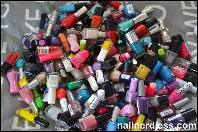 Hier is hij dan eindelijk! Mijn nagellak stash. Hier werd echt onwijs veel om gevraagd. Ik wou het eigenlijk al eerder doen, maar het kwam er maar niet van. Maandag morgen stond ik op en ik dacht meteen “Ik ga nu de foto’s voor de nagellak stash schieten! Daar heb ik zin in!” en ik ging aan de slag, haha! Ik heb ze ook even geteld. Ik heb ook niet alle lakjes gefotografeerd, omdat die merken al lang niet meer te koop zijn of dat ze te klein waren. Ik heb er nu zo’n 165 gefotografeerd en ik heb er 180. Veel plezier! 🙂