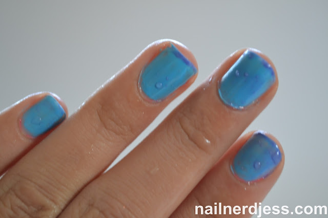 Ik kocht deze lak een paar weken geleden bij de intertoys voor 2,49 en kon deze lak uiteraard niet laten liggen. Mijn eerste indruk was ‘Wow, een nagellak die van kleur veranderd? Nee.. Dat kan niet! Dat moet ik even testen!’. Eenmaal thuis gekomen deed ik hem gelijk op. Op het begin was hij gewoon helemaal paars. Ik geloofde niet meer zo in deze lak. Ik ging meer informatie over deze lak zoeken. Ik liep naar de kraan en deed wat warm water over mijn nagels heen. En ja! Hij werkte echt!