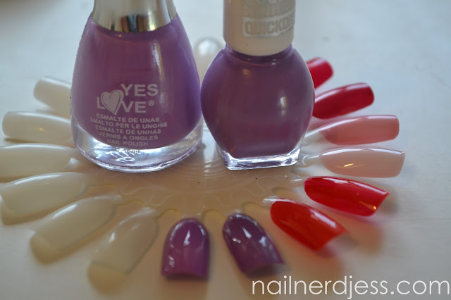 Als laatste vond ik deze 2 lakken. De ene is van Yes love en de andere van miss sporty. Die van yes love is nummer Y248 en de andere is nummer 344. Deze lijken echt sprekend op elkaar. Ik kan niks vinden wat niet op elkaar lijkt aan de kleur. Ze zijn echt precies dezelfde kleur. Geen tintje lichter of donkerder, matter of glanzender. Nee! Allemaal niet. Ze lijken echt sprekend op elkaar!
