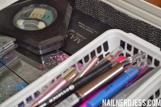 Ik kreeg donderdag een mailtje van een heel lief meisje, die vroeg hoe het er nou uit zag met die anti slip matjes voor je in lade en of dit nou echt werkt. Hierboven zie je even een soort resultaat van mijn lade met anti slip matje erin. Je ziet het wel, maar dat maakt mij niet zo heel erg veel uit. Het werkt wel heel erg goed. Ik heb helaas maar één rol meegenomen en dit past maar in twee lades. Ik heb er voor gekozen om mijn tweede make up lade te bedekken met anti slip en mijn tweede lade van nagellak en nail art spullen. Dit omdat deze het meeste schoof, voordat deze anti slip er in zat.