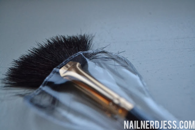Hier zie je de kleine waaier kwast. Deze is ook heel erg fijn. Ook hier zit een hoes omheen.. Helaas gaan ook daar de haartjes van mee, dus moet je extra voorzichtig zijn. Verder is hij wel heel erg fijn. Ik ga deze kwast denk ik gebruiken voor highlighter.