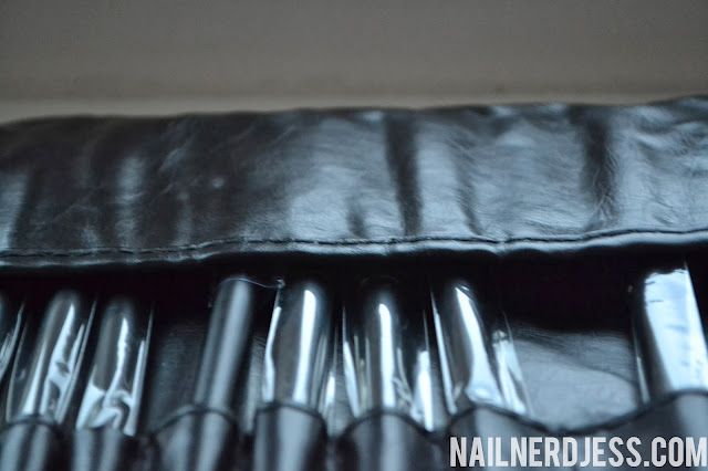 Alle kwasten zitten erg goed verpakt in zo’n soort gat waar je de kasten in kunt steken. Ze vallen er ook zeker niet snel uit! Daarnaast zit er over de kwasten (behalve de waaier kwast) een grote flap, zodat de haartjes niet snel zullen beschadigen.