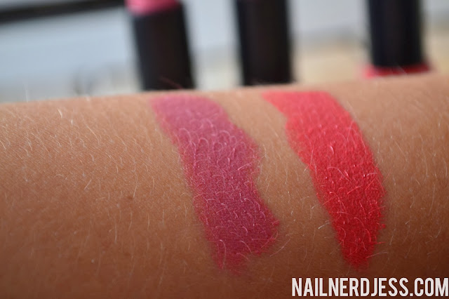 Hier heb ik de swatches op mijn arm. Wow, wat zien ze er super goed uit! Ze zijn wel romig, maar dat vind ik persoonlijk wel fijn. Als je zo’n stroeve lippenstift hebt.. Blegh. Ik hou daar niet van! Deze zijn perfect romig.