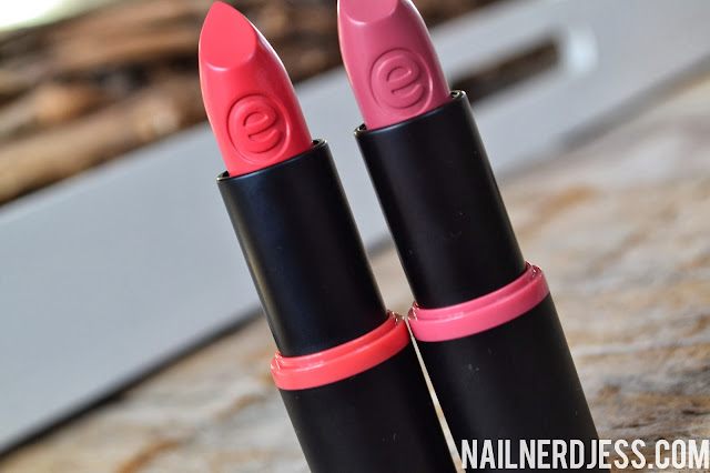 De huls van de lippenstiften, wauw! Ik vind deze echt heel erg mooi. Wat dat betreft heeft Essence er goed over nagedacht. Het zwarte matcht erg mooi met de gekleurde omranding. Het ziet er erg leuk en strak uit. Ook de e-tjes op de doppen vind ik er erg leuk uitzien. Over het uiterlijk is dus super goed nagedacht!