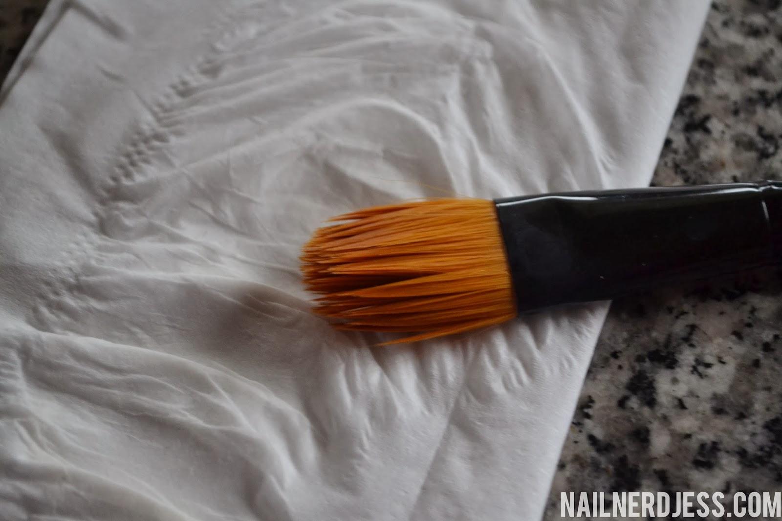 Stap 1. Doe wat kwasten reiniger op je tissue of handoekje etc. Het mag best veel zijn!