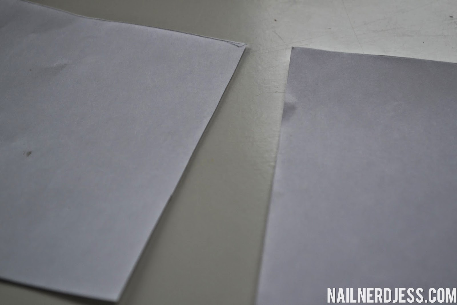 Ik ben begonnen met het aftekenen en knippen van het formaat van de schilderijtjes. Daarna heb ik met een plakstift twee papiertjes aan elkaar geplakt, zodat de papiertjes goed dekken en de nagellak niet snel gaat doorlekken.