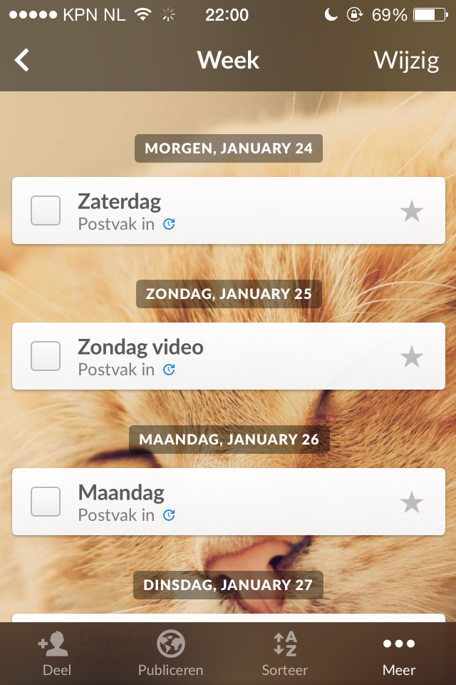 Ook is het heel erg handig dat je alles kan indelen in verschillende dagen. Een soort agenda dus! Ik vind dit vooral handig omdat ik voor mijn blog zo kan zien wat ik nog moet doen voor die week en wat ik al heb gedaan. Ook kan ik proefwerken indelen.