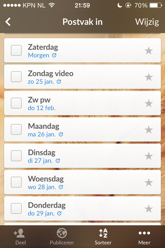 Natuurlijk kan je ook een agenda app gebruiken, maar deze app vind ik juist zo handig omdat je alles kunt afvinken.