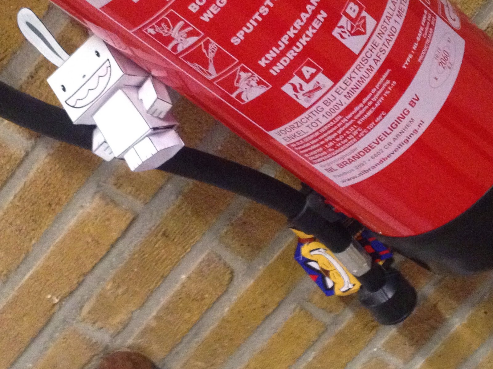 We moesten met CKV poppetjes maken op school en daarna een creatieve foto van de poppetjes maken. De brandblusser vonden we wel een leuk idee.
