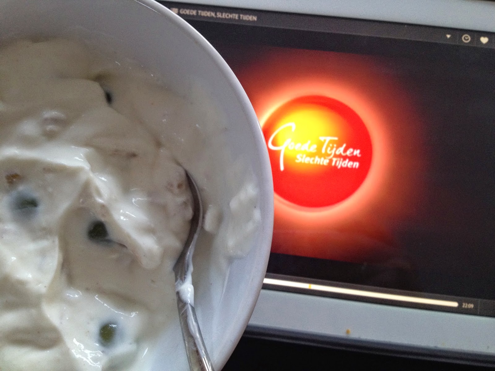 GTST terugkijken met een of andere yoghurt met appel en kaneel. Jammieee!