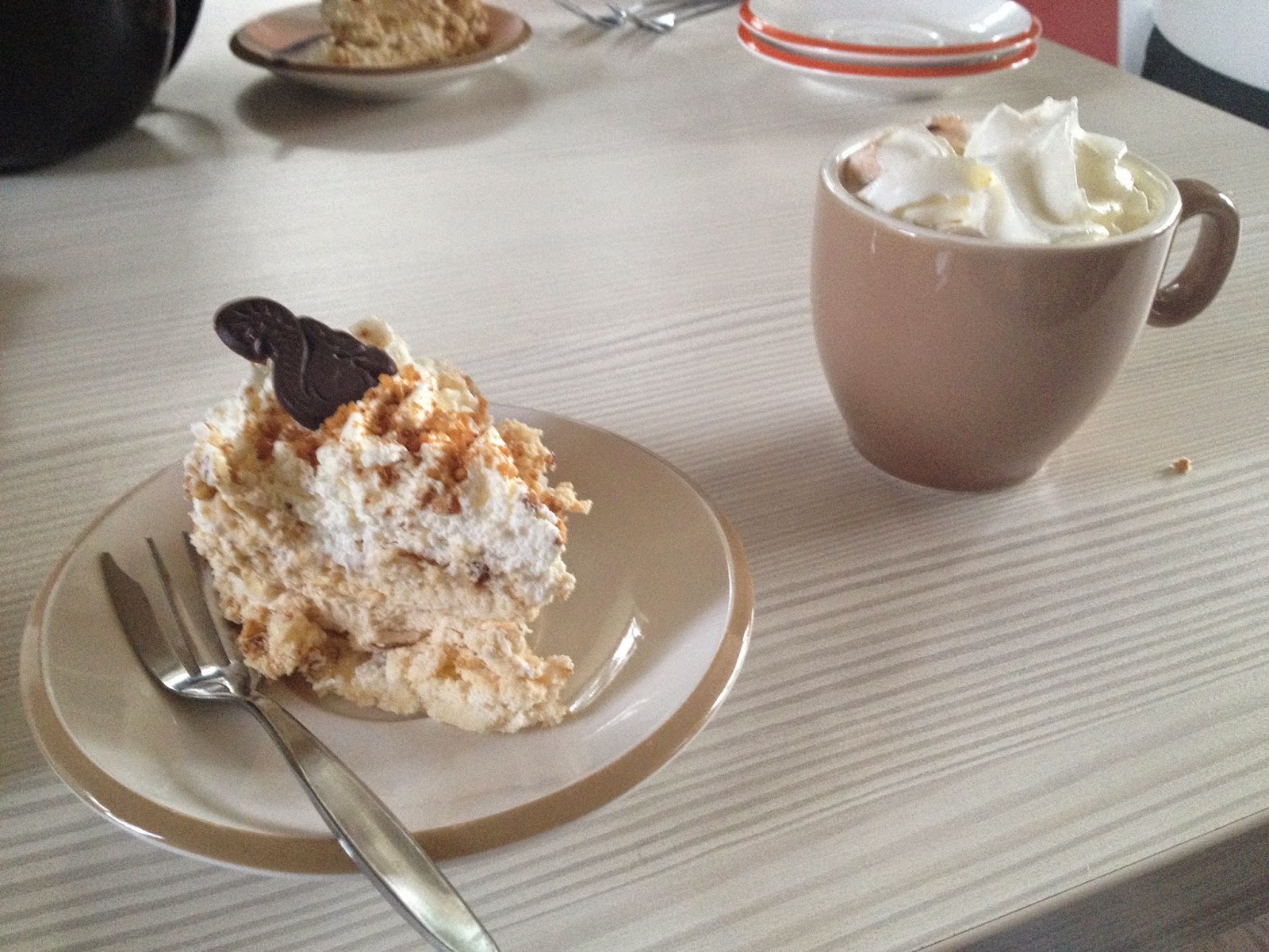 Mijn opa was jarig dus we aten taart met chocolade melk en slagroom! Jammie!